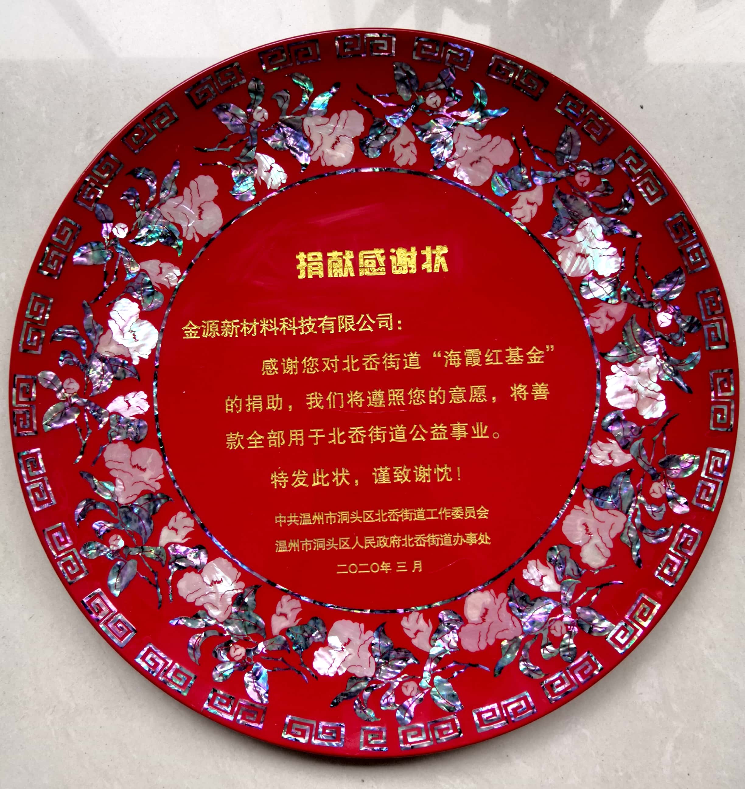 | 海霞紅基金捐贈(zèng)感謝狀 |
