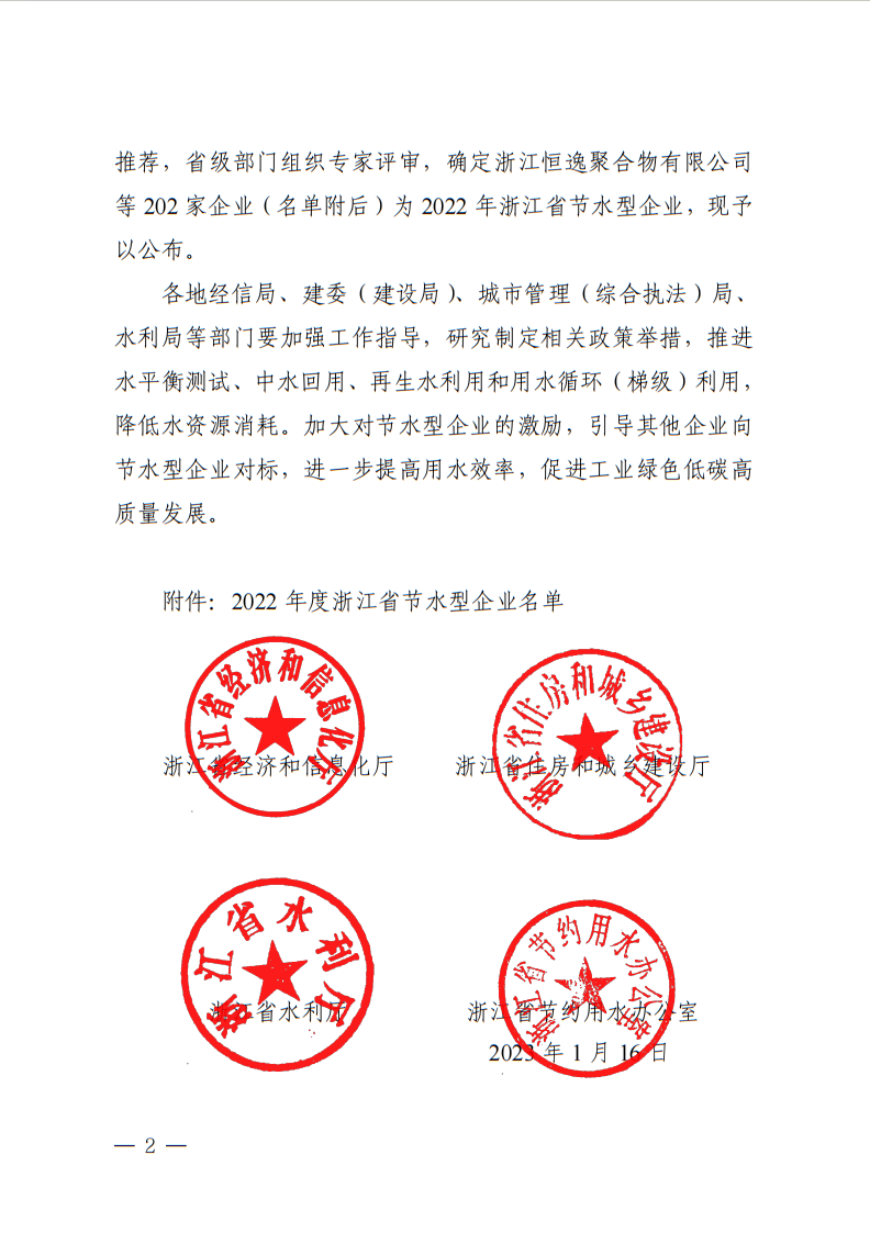 2022年浙江省節水型企業名單1